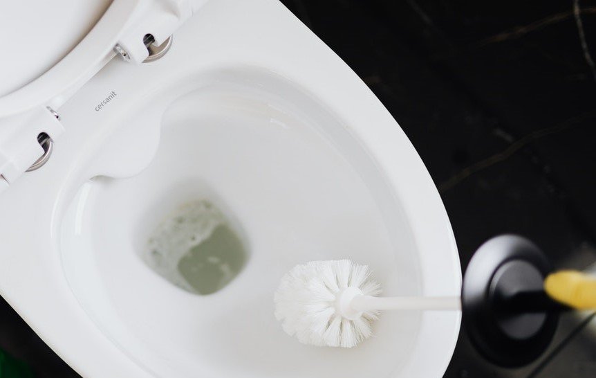 - Em seguida, limpe a área sob a borda do vaso sanitário com uma escova.